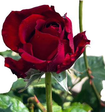 On my way out of our building, I notice that a blue iris now blooms next to the yellow one that opened yesterday. Walking down the sidewalk, I take in the dark-red roses proliferating next door.